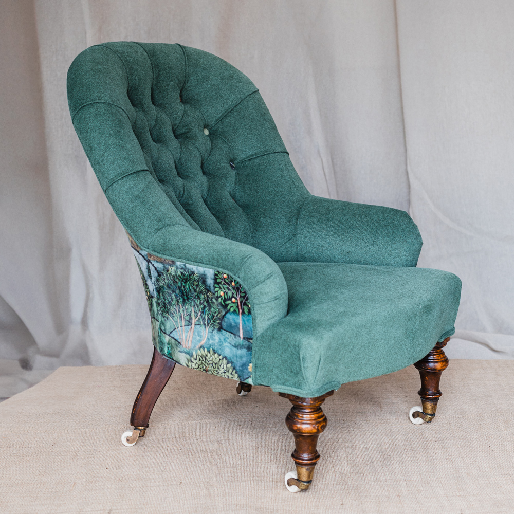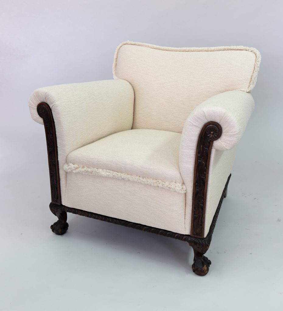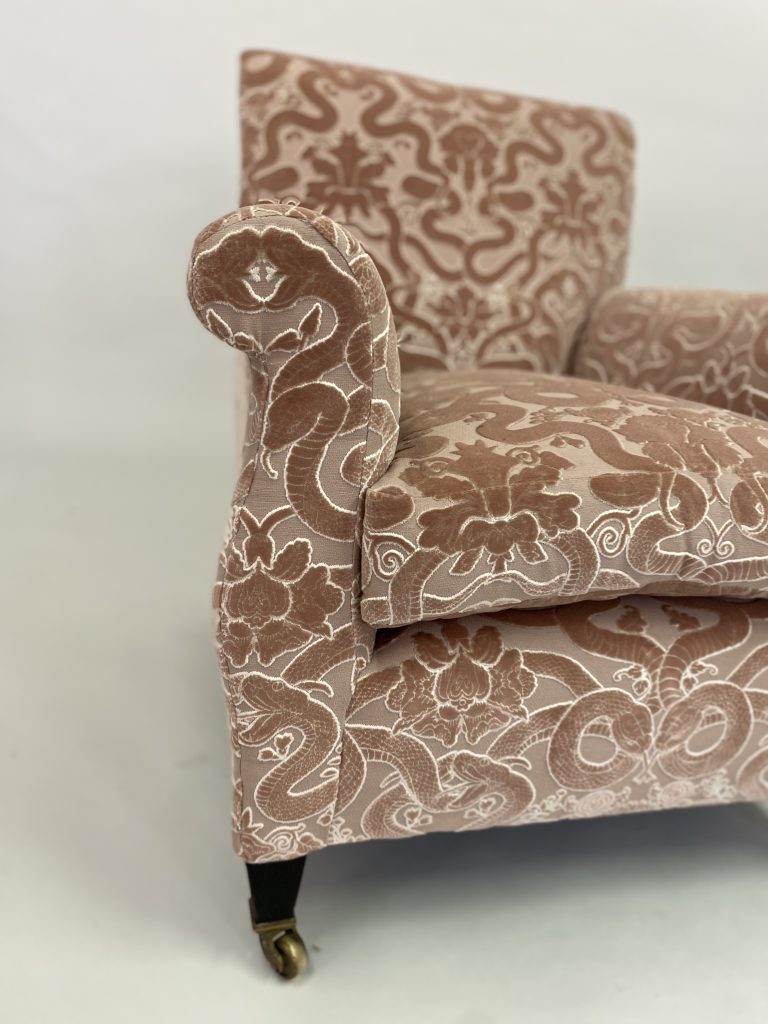- A substantial traditional armchair (Assessed Piece Sourced & funded by student) which should include at least two of the following elements: the fitting of caps and collars, scroll arms or stitched-up edges to arms, sprung arms, coil sprung seats, independent sprung edges, deep buttoning, fluting or an iron framed chair.